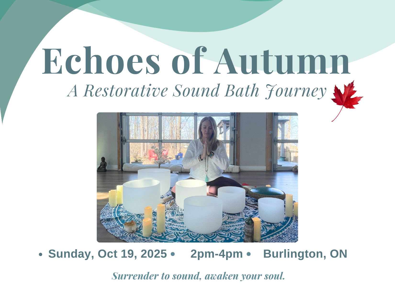 Embrace the shift of the season with our Echoes of Autumn experience — a calming, two-hour journey of reflection and renewal. Settle into the soothing embrace of restorative yoga, designed to gently release tension and ground your body. Then, surrender to the healing tones of a meditative sound bath, as vibrations wash over you and invite deep rest and inner clarity. This cozy, heart-centered event is perfect for anyone craving stillness, balance, and a moment to reconnect with themselves amid the changing rhythm of fall.
